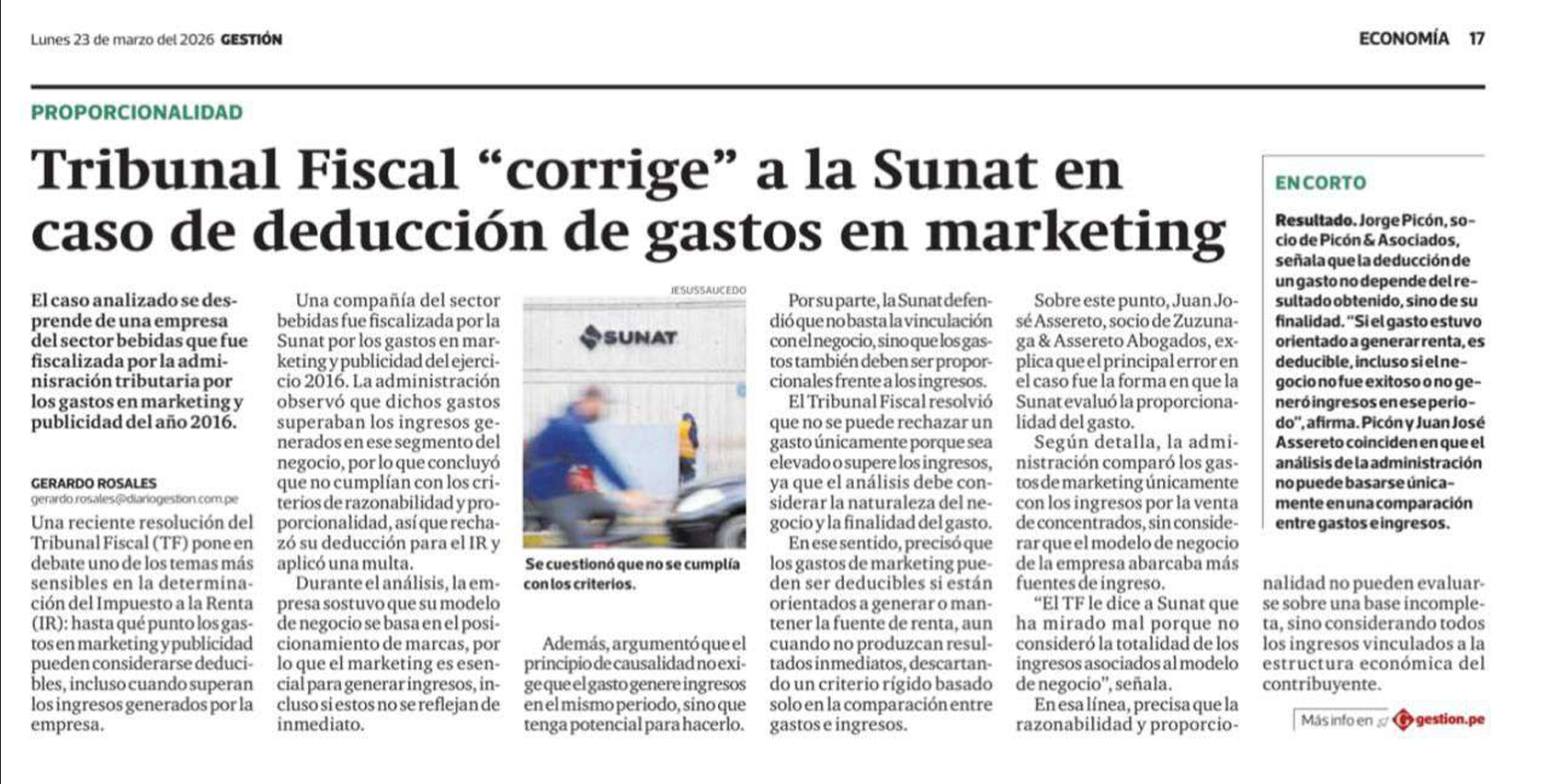 En el reciente caso comentado en Diario Gestión (empresa del sector bebidas, sobre gastos de marketing y publicidad), SUNAT negó la deducción alegando falta de razonabilidad y proporcionalidad con los ingresos de un segmento del negocio.